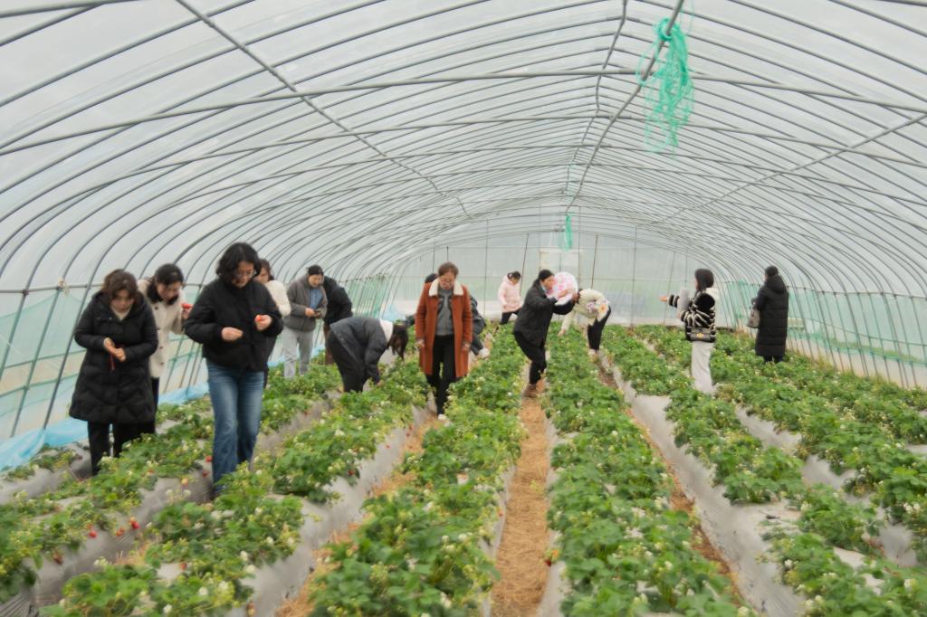 3月5日下午,学校的女教职工们齐聚学校门口,乘坐大巴前往草莓园采摘。一路上,大家欢声笑语,对即将到来的采摘活动充满期待。