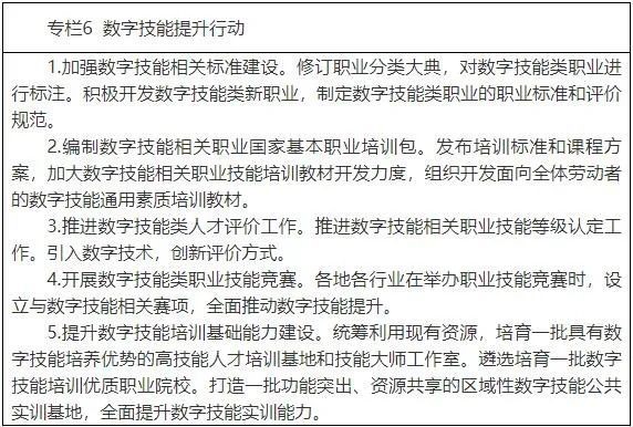 适应数字经济发展,加快培养全民数字技能,实现信息服务全覆盖。加大人工智能、云计算、大数据、数字营销等新技术培训力度。引导企业加强数字工作场所的职工技能培训。