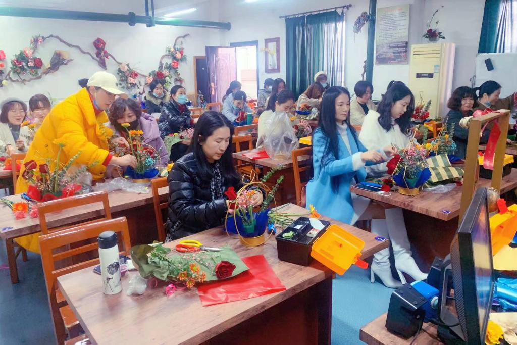 1月5日上午,由海洋旅游学院承办“花趣共赏,香约腊月”花艺公益培训班圆满结业。在图书馆五楼花艺实训室里,翁名媛老师为30余名全市各行业的花艺爱好者进行了现场实训授课。课上,分享了花艺的文化内涵和制作技巧,并现场进行了花艺制作教学,花艺爱好者们用心制作、享受其中。