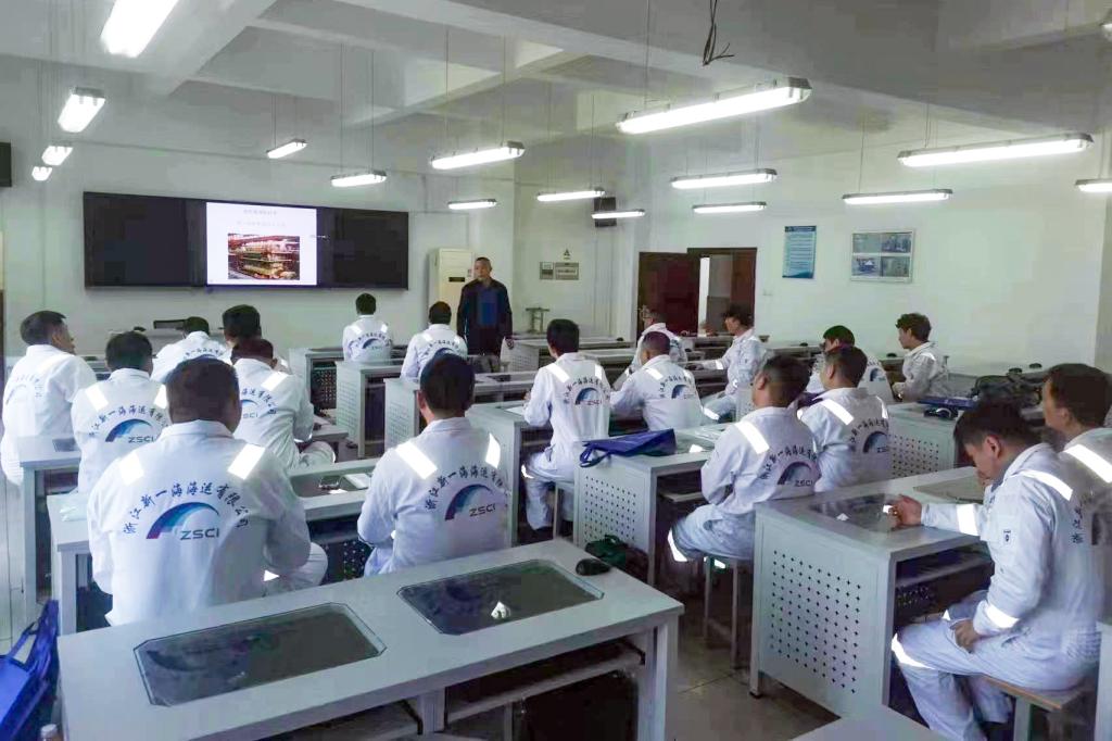 本期培训对象为浙江新一海海运有限公司船长、轮机长、驾驶员、轮机员共48人,培训时间为期四天,也是继2021年以来连续承接的第 6次大规模、周期性社会服务。主要依托虚拟仿真实训基地的航海模拟器、轮机自动化机舱、艇筏实训基地等设施设备,结合公司船舶实际有针对性的开展船舶应急避碰、驾驶台资源管理、船舶制冷技术、船舶安全检查等项目开展培训。